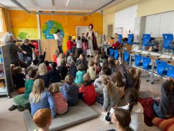 Am Tag unseres Abschlusses war es endlich soweit! Die Theater-AG präsentierte uns ihr lang und intensiv erarbeitetes Märchenstück! Mit selbst ausgesuchten Kostümen, einer märchenhaften Kulisse, die in Zusammenarbeit mit der Kinder und
